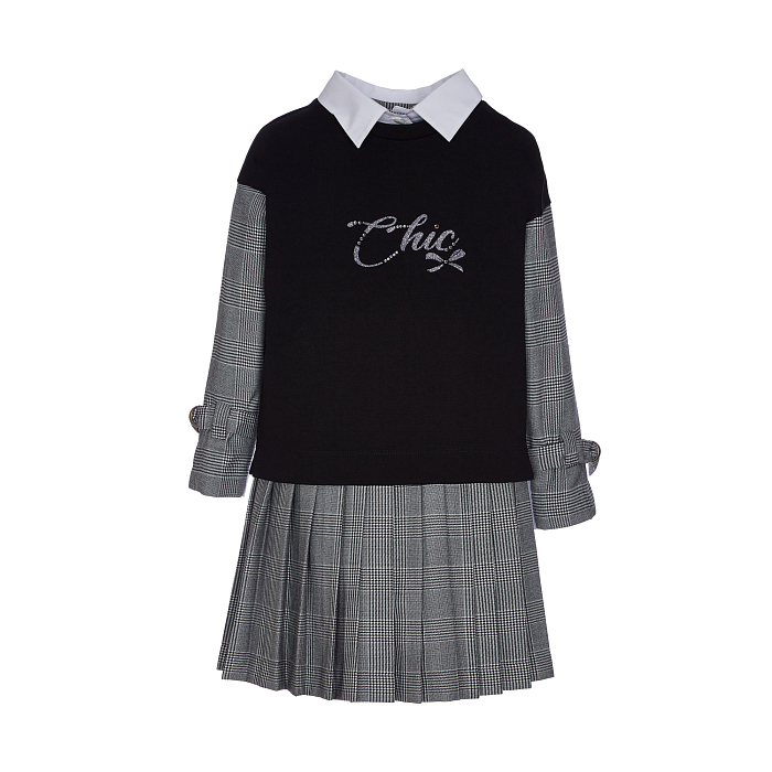 Платье для девочек Lapin House – это идеальный выбор для маленьких модниц! Изготовленное из комбинации 47% полиэстера, 26% хлопка, 25% вискозы и 2% эластана, оно дополнено подкладкой из 100% хлопка и рукавами из клетки. Модный принт Chic на черном фоне создает стильный и элегантный образ. На фотографии видна белая подкладка с воротником и рукавами из клетки, а также принт Chic на черном фоне. Качество от бренда из Греции и внимание к деталям делают это платье отличным выбором для вашего ребенка!