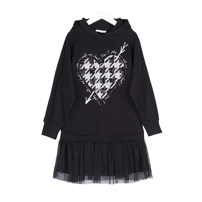 Платье тр. для девочки Elsy – это идеальный выбор для стильных и комфортных образов! Изготовленное из 95% хлопка и 5% эластана, оно дополнено ярким принтом сердца с надписями. Черный цвет подчеркивает элегантность и стиль, а принт придает модели оригинальности и неповторимости. На фото видно, как мягко и удобно сидит платье на девочке, а также заметен стильный принт сердца с надписями. Качество от Китая и внимание к деталям делают эту модель отличным выбором для вашего ребенка!