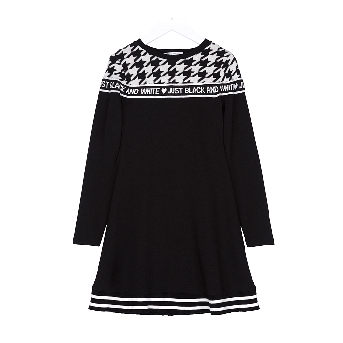 Платье тр. Elsy – это идеальный выбор для стильных девочек! Изготовленное из комбинации вискозы, полиамида, эластана и хлопка с акрилом, оно украшено классическим принтом клетка и надписью Just Black and White. Нежная черно-белая гамма создает элегантное и модное настроение. На фотографиях видна аккуратная белая контрастная окантовка по краю и мягкая текстура ткани. Качество от Китая и внимание к деталям делают эту модель отличным выбором для вашего ребенка!