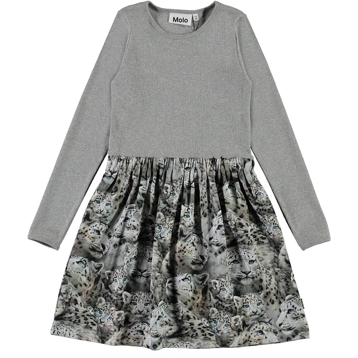 Платье тр. для девочки Molo – это идеальный выбор для стильных девочек! Изготовленное из 95% органического хлопка и 5% эластана, оно украшено очаровательным принтом снежных леопардов. Нежная ткань с ярким принтом создает уютное и в то же время модное настроение. На фотографиях видна эластичная резинка по низу платья и удобная посадка. Качество от бренда из Дании и внимание к деталям делают эту модель отличным выбором для вашего ребенка!