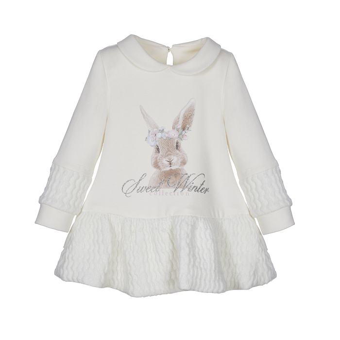 Платье для девочки Lapin House – это идеальный выбор для маленьких модниц! Изготовленное из 88% вискозы, 10% тактеля и 2% лайкры, оно дополнено подкладкой из 100% хлопка. Милый зайчик с цветочным венком на белом фоне создает нежное и уютное настроение. На фотографии видна аккуратная белая окантовка по краю и мягкая текстура ткани. Качество от бренда из Греции и внимание к деталям делают эту модель отличным выбором для вашего ребенка!