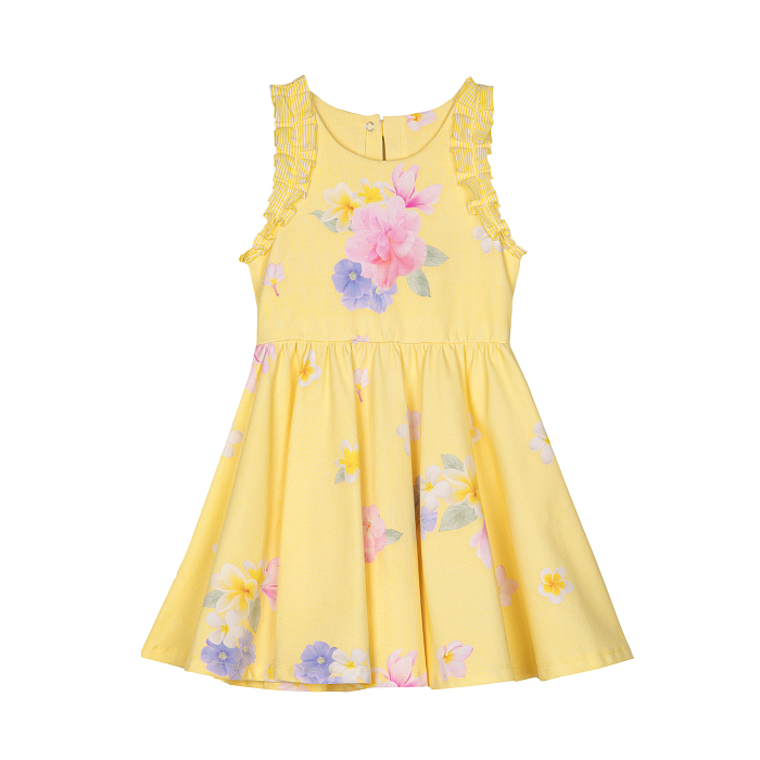 Платье Lapin House – это идеальный выбор для девочек! Изготовленное из 95% хлопка, 3% полиамид и 2% лайкры, оно украшено ярким цветочным принтом в нежных оттенках желтого, розового и синего. Эластичная лайкра обеспечивает комфортную посадку и свободу движений. Нежная текстура ткани и аккуратные оборки на плечах создают очаровательный и праздничный образ. На фотографиях видна аккуратная отделка по краю и мягкое платье с цветочным принтом, которое идеально подойдет для летних прогулок и праздников!