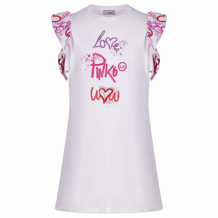 Платье тр. Pinko Up – это идеальный выбор для маленьких модниц! Изготовленное из 100% хлопка, 97% полиэстера и 3% эластана, оно обеспечивает мягкость и комфорт. Надпись Love Pinko Up и сердечки на белом фоне создают яркий и стильный дизайн. Качество итальянского бренда Pinko Up делает это платье отличным выбором для вашего ребенка!