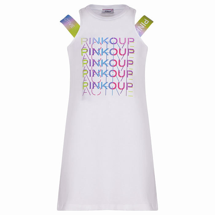 Платье для девочек Pinko Up – это идеальный выбор для стильных и активных малышек! Изготовленное из 100% хлопка, оно украшено ярким принтом Pinkoup, состоящим из разноцветных букв и линий на белом фоне. Платье с открытыми плечами и удобной посадкой идеально подойдет для детей в возрасте от 3 до 10 лет. На фотографии видна аккуратная отделка плечевого шва и мягкая текстура ткани. Качество от итальянского бренда и внимание к деталям делают эту модель отличным выбором для вашего ребенка!
