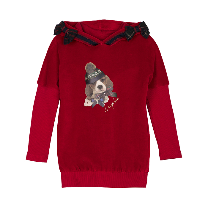Платье тр. для девочки Lapin House – это идеальный выбор для маленьких модниц! Изготовленное из 86% хлопка и 14% полиамида, оно украшено очаровательным принтом собаки в шарфе на капюшоне. Нежная красная основа с ярким принтом и шарфом создает стильный и комфортный образ. На фотографиях видна аккуратная детализация капюшона с шарфом и мягкость ткани. Качество от бренда из Греции и внимание к деталям делают эту модель отличным выбором для вашего ребенка!