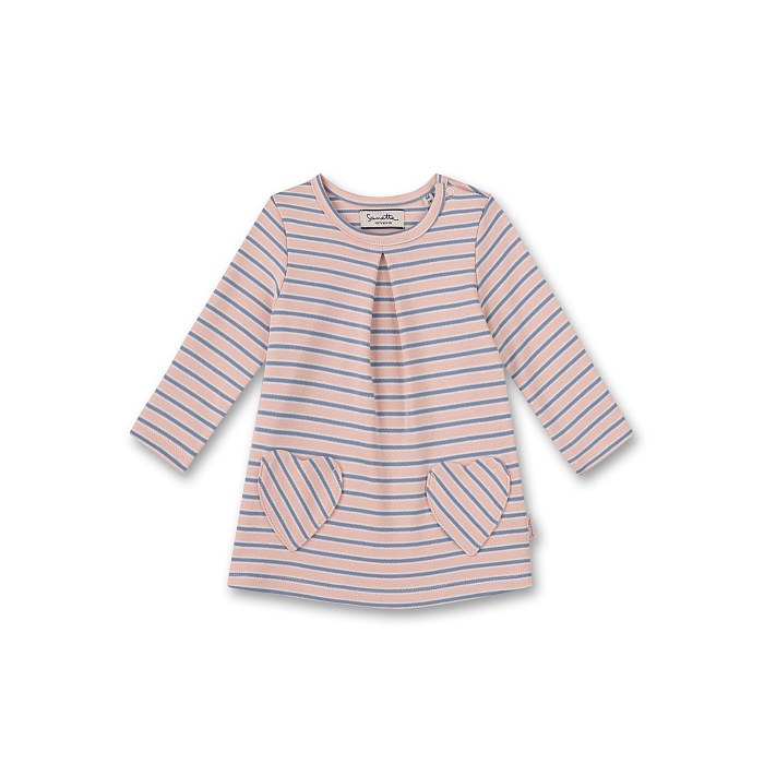 Платье тр. Sanetta – это идеальный выбор для девочек! Изготовленное из 100% органического хлопка, оно украшено очаровательными сердечками на карманах. Красивая полоска в нежных оттенках создает легкую и приятную атмосферу. На фотографиях видны сердечки на карманах и мягкая текстура ткани. Качество от бренда из Германии и внимание к деталям делают эту одежду отличным выбором для вашего ребенка!