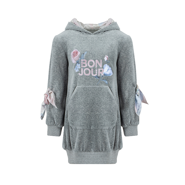 Платье тр. серое с принтом Bonjour для девочек 10-14 лет