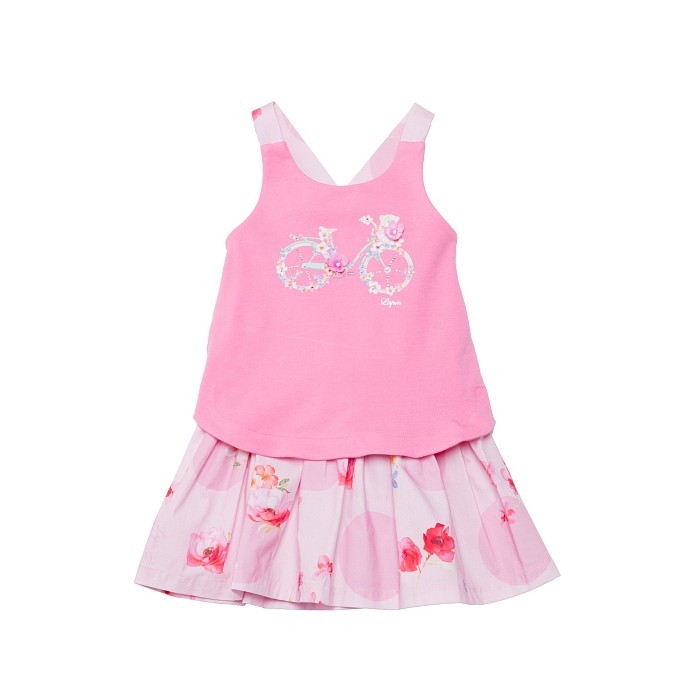 Сарафан Lapin House – это идеальный выбор для девочек! Изготовленный из 94% хлопка и 6% эластана, он украшен очаровательным принтом велосипеда с цветами и розами. Розовый цвет создает нежное и романтичное настроение, а эластичная ткань обеспечивает комфорт и свободу движений. На фотографии видна аккуратная отделка по краю и мягкая текстура ткани. Качество от бренда из Греции и внимание к деталям делают этот сарафан отличным выбором для вашего ребенка!