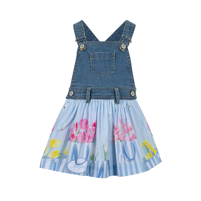 Сарафан для девочек с цветочным принтом и джинсовыми вставками