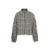 - 🎨 Дизайн: принт в стиле гусиных лапок, черный фон