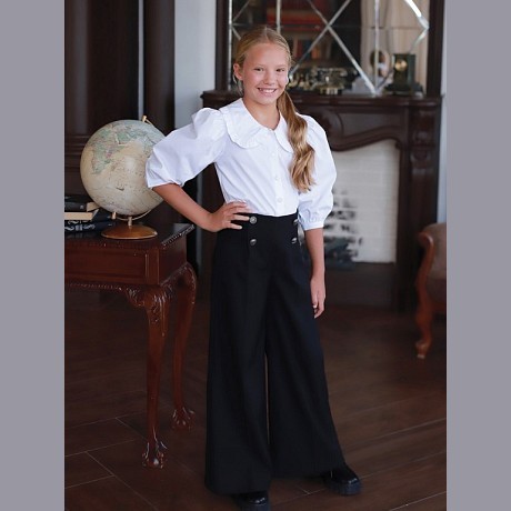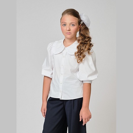 Школьная блузка для девочек от Андерсен белая с воротником АНДЕРСЕН