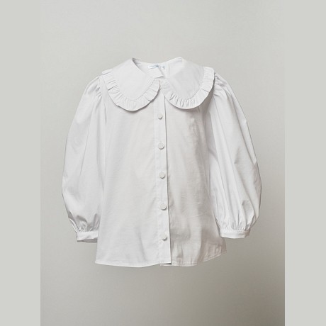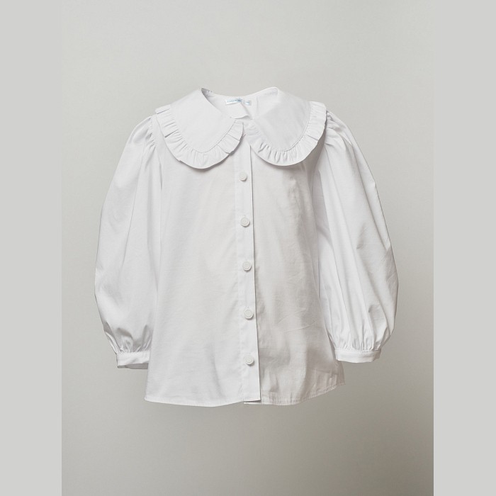 - 🎨 Дизайн: белый цвет, воротник с оборками, рукава-фонарики