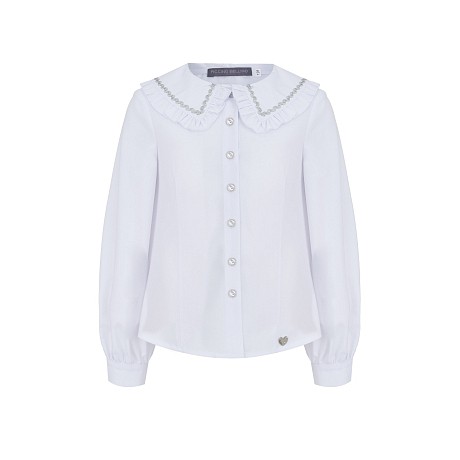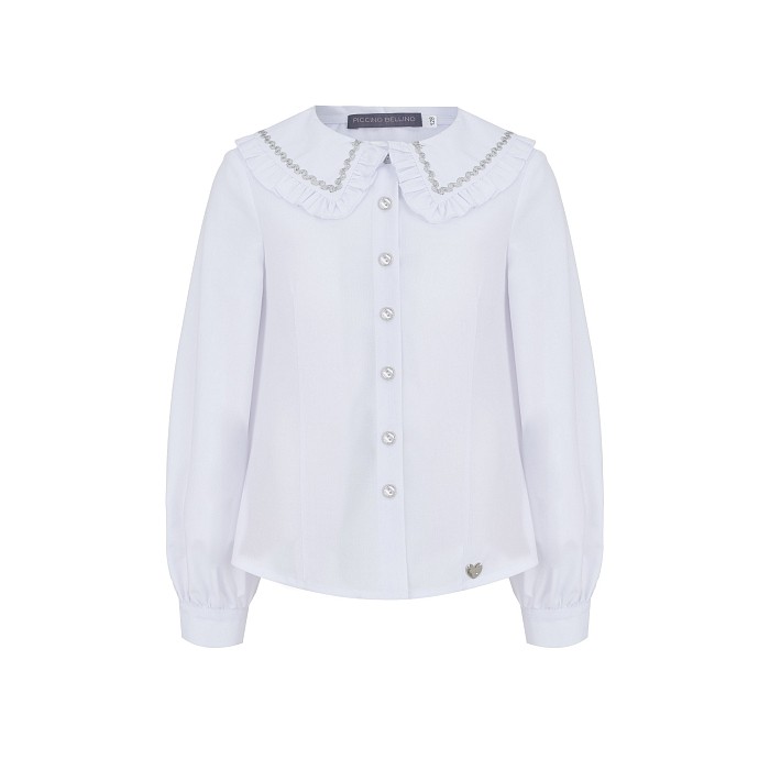 Белая блузка для девочек PICCINO BELLINO с серебряной тесьмой