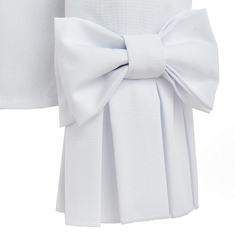 - 🎀 Дизайн: воланы на рукавах, бантик на воротнике