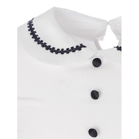 - 🎨 Дизайн: белый фон, черные пуговицы, элегантный воротник