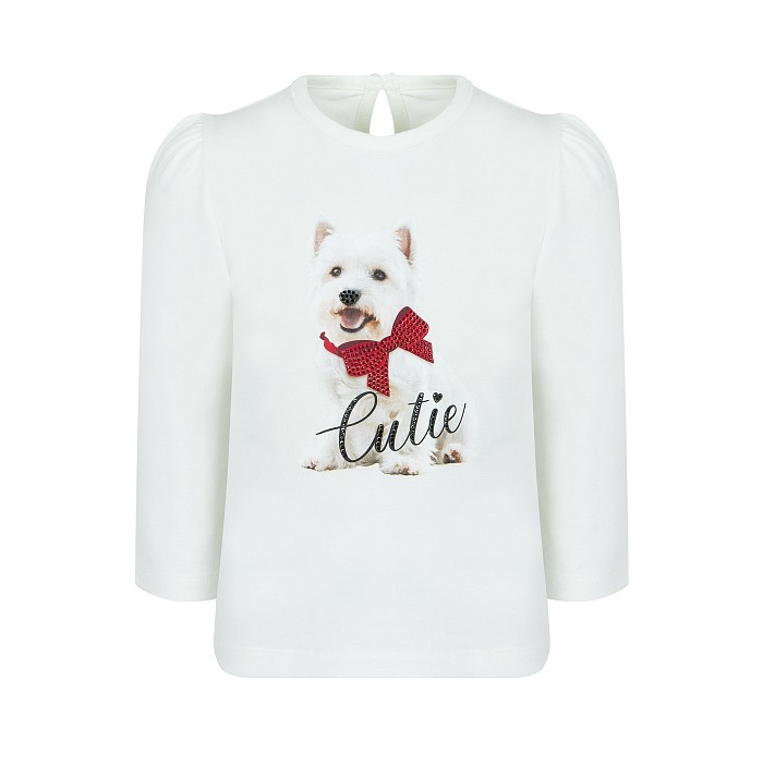 Блузка трикотажная для девочек Lapin House с принтом собаки и надписью Cutie