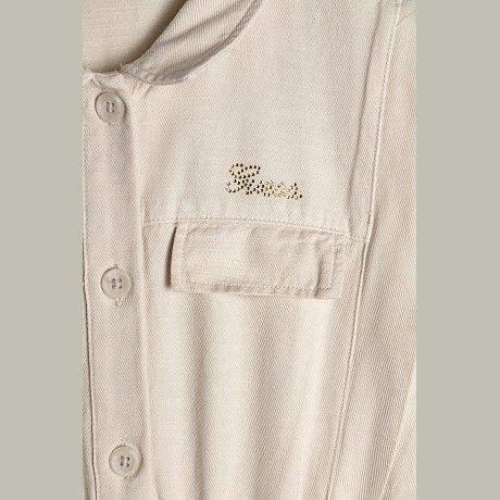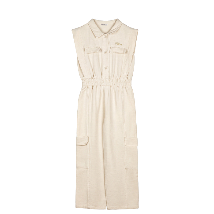 Платье для девочек Guess – это идеальный выбор для стильных и активных девочек! Изготовленное из 55% хлопка и 45% лиоцелл, оно идеально подходит для теплых дней. Молочное платье с карманами по бокам и эластичным поясом обеспечивает комфорт и удобство. На фотографиях видны четкие карманы по бокам, эластичный пояс и кнопки на передней части. Качество от бренда из США делает эту модель отличным выбором для вашего ребенка!