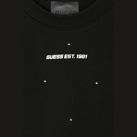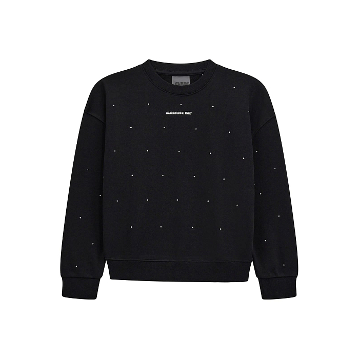 Джемпер Guess черного цвета с пайетками и логотипом Guess – это идеальный выбор для девочек от 8 до 14 лет! Изготовлен из 60% хлопка и 40% полиэстера, он обеспечивает мягкость и комфорт. Джемпер украшен мелкими пайетками, которые придают ему элегантный и модный вид. Логотип Guess на груди и на спине делает эту вещь еще более стильной. На фотографиях видна аккуратная отделка пайетками по всему изделию, а также мягкая текстура ткани. Джемпер Guess – отличный вариант для повседневного использования или для создания модного образа.