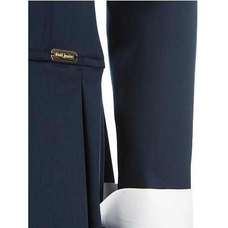 - 🎨 Дизайн: темно-синий цвет, белый воротник, белые манжеты на рукавах