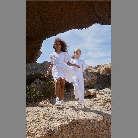 Платье для девочки Molo – это идеальный выбор для теплых дней! Изготовленное из 100% натурального хлопка, оно украшено элегантными рукавами-фонариками и эластичным поясом. Белый цвет подчеркивает нежность и простоту, а рукава-фонарики придают образу легкость и воздушность. На фотографиях видна эластичная резинка пояса и мягкая текстура ткани. Качество от бренда из Дании и внимание к деталям делают эту модель отличным выбором для вашего ребенка!