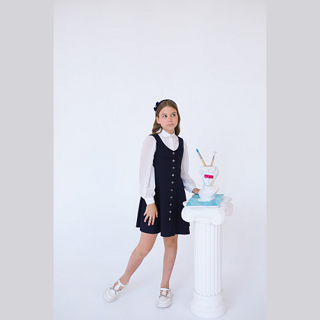 Текстильный сарафан для девочек Андерсен синий с пуговицами