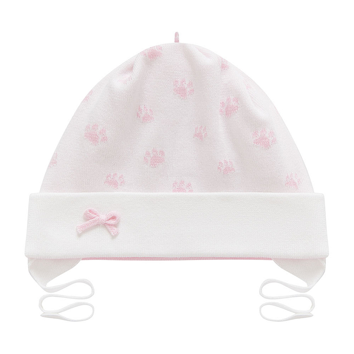 Шапка для девочки белая и бледно-розовая с принтом лапок
