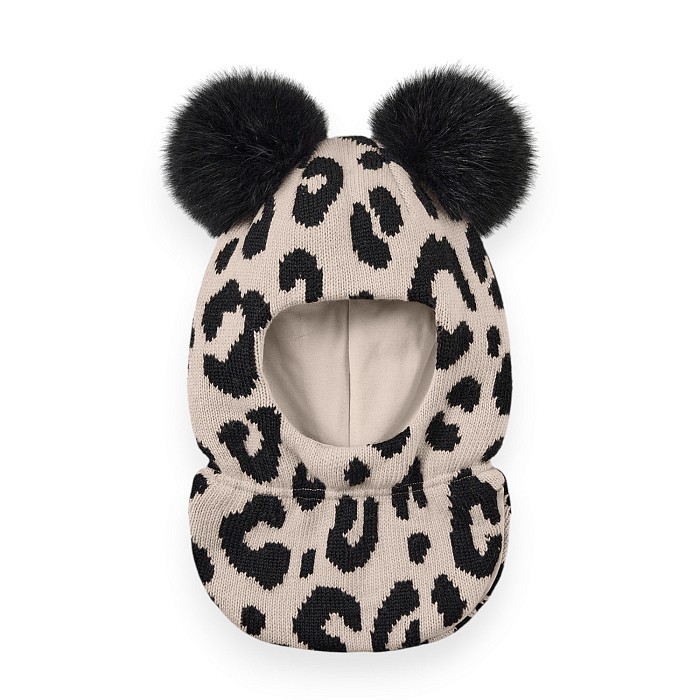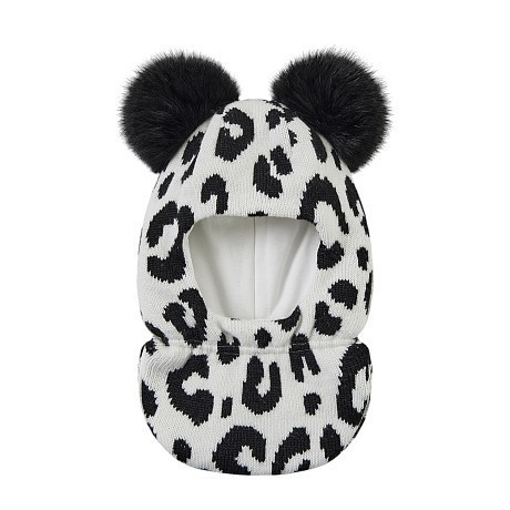 Шлем для девочек с леопардовым принтом и меховыми помпонами