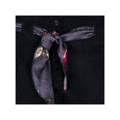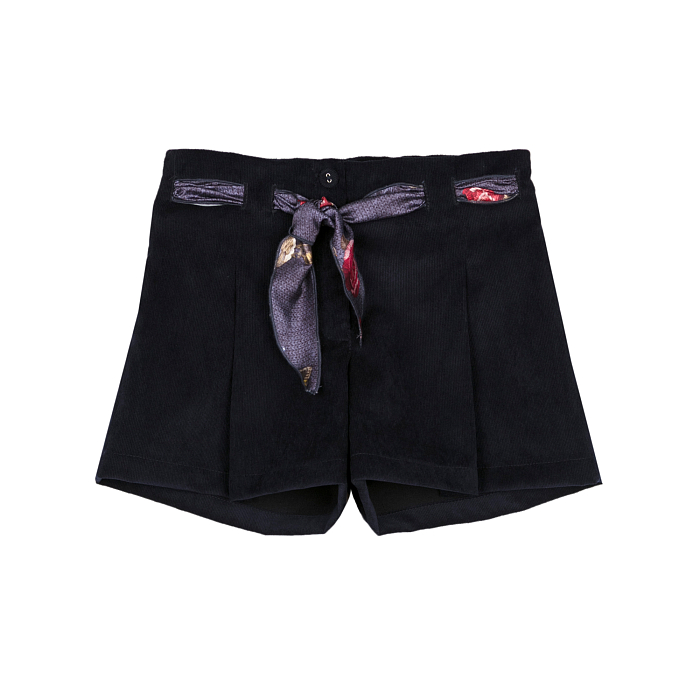 Шорты для девочек темно-синие с поясом из ткани с принтом