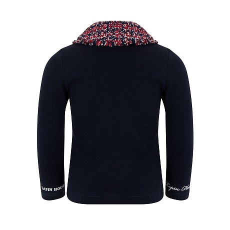 Джемпер Lapin House – это идеальный выбор для девочек 7-12 лет! Изготовлен из 93% хлопка и 7% лайкры, он украшен воротником из твида в клетку с красными и белыми элементами. Темно-синий цвет с контрастным воротником создает стильный и комфортный образ. На фотографиях видна эластичная резинка по краю воротника и мягкая текстура ткани. Качество от бренда из Греции и внимание к деталям делают этот джемпер отличным выбором для вашего ребенка!