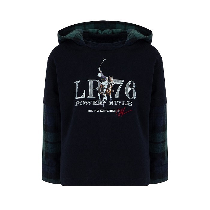 Джемпер для мальчиков Lapin House темно-синий с принтом лошади и ридеров