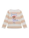 Стильная фуфайка от американского бренда Guess – идеальный базовый элемент гардероба для вашей принцессы! Мягкая ткань из хлопка с добавлением эластана обеспечивает идеальную посадку и свободу движений. Очаровательный принт с медвежонком в розовой шляпке и надписью «enjoy the moment» добавит образу игривости. Пастельное сочетание персиковых и белых полос создает нежный, весенний стиль.