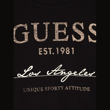 Футболка Guess – это отличный выбор для юных модниц! Изготовленная из 100% хлопка, она украшена элегантным принтом Los Angeles с золотыми буквами и надписью "EST. 1981" на черном фоне. Футболка идеально подходит для девочек 12 лет, обеспечивая комфорт и стиль. Качество от американского бренда Guess подчеркивает премиум-класс и внимание к деталям. Быстрая доставка СДЭК по всей России.