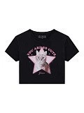 Черная футболка GUESS с принтом кота для девочек (7-12 лет)