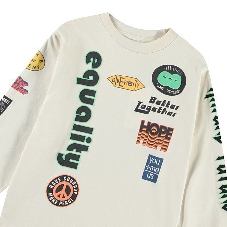 - 🎨 Дизайн: принты с надписями "Equality", "Diversity", "Hope", "you+me us", "Make Peace", "Have Courage"