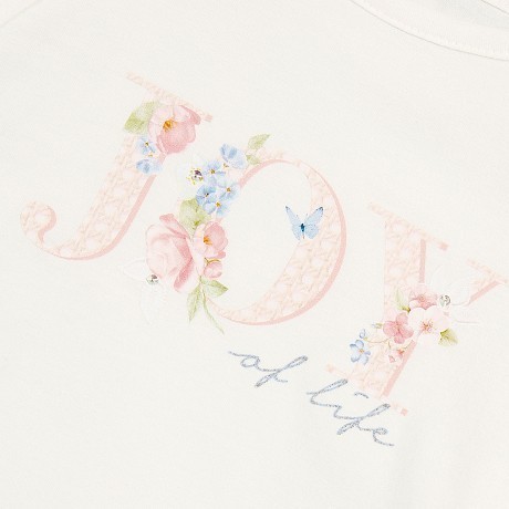 - 🎨 Дизайн: молочный цвет, принт JOY of life с цветами и вышивкой