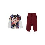 Этот комплект от американского бренда GUESS – идеальное сочетание комфорта и трендового дизайна. Верхняя часть выполнена в технике пэчворк с синей клеткой и белыми рукавами, украшена крупным фирменным логотипом. Бордовые штаны с кулиской на поясе и манжетами на низу создают гармоничный образ для активных игр. 100% хлопок обеспечивает мягкость и безопасность для нежной кожи ребенка.