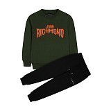 - 🎨 Дизайн: зеленая толстовка с логотипом John Richmond, черные брюки с белой полосой