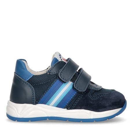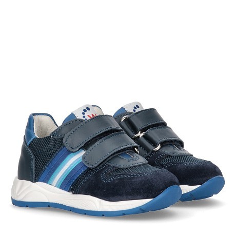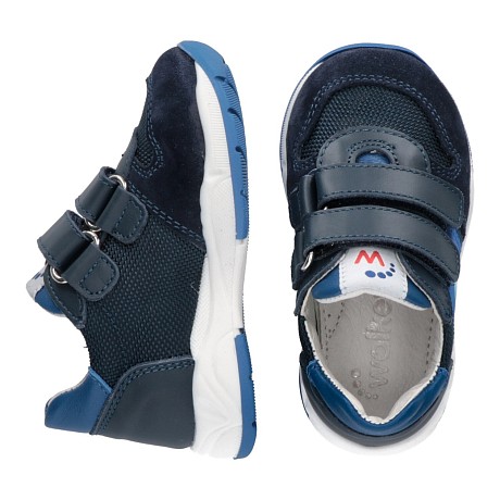 - 👟 Дизайн: темно-синий цвет, белая подошва, удобная застежка-липучка