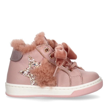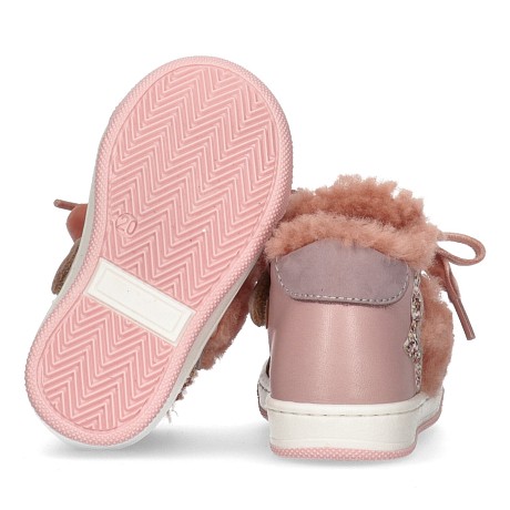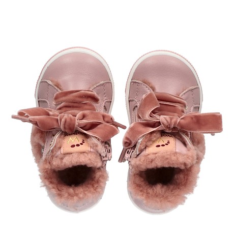 Кроссовки высокие для девочек Walkey бледно-розовые с мехом и бантами