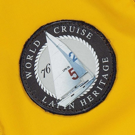 - 🎨 Дизайн: золотистый цвет, принт яхты с надписями