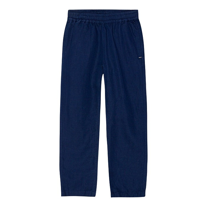 Брюки для мальчиков Molo – это идеальный выбор для активных юношей! Изготовленные из 51% льна и 49% хлопка, они сочетают в себе комфорт и стиль. Темно-синий цвет придает брюкам элегантность, а эластичный пояс обеспечивает удобную посадку. На фото видны карманы на задней стороне и мягкая текстура ткани. Качество от датского бренда Molo делает эти брюки отличным выбором для вашего ребенка!