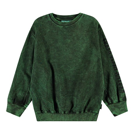 Джемпер Molo темно-зеленого цвета – идеальный вариант для мальчиков от 8 до 14 лет! Изготовлен из 100% натурального хлопка, он обеспечивает комфорт и мягкость при ношении. Джемпер с круглым вырезом горловины и длинными рукавами идеально подойдет для теплой погоды. На фото видна аккуратная окантовка по краю рукавов и низу изделия, а также стильный принт на рукавах. Качество от датского бренда Molo и внимание к деталям делают этот джемпер отличным выбором для вашего ребенка!