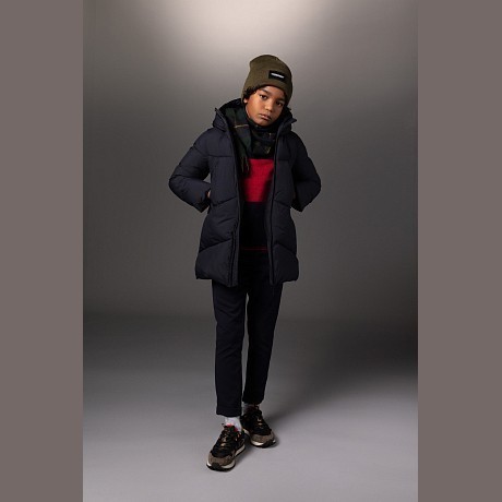 Куртка для мальчиков темно-синего цвета с капюшоном и наполнением 90% пуха