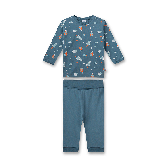 Пижама для мальчиков Sanetta серо-голубая с принтом ракет и шаров - доставка СДЭК по всей России - 222266/23-02