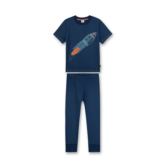 Пижама Sanetta – это идеальный выбор для маленьких космонавтов! Изготовленная из 100% хлопка, она украшена ярким принтом ракеты с оранжевыми деталями на темно-синем фоне. Нежная ткань и удобная посадка создают комфорт для вашего ребенка. На фотографиях видна аккуратная оранжевая контрастная окантовка по краю и мягкое эластичное края на трусах. Качество от немецкого бренда и внимание к деталям делают эту пижаму отличным выбором для вашего малыша!