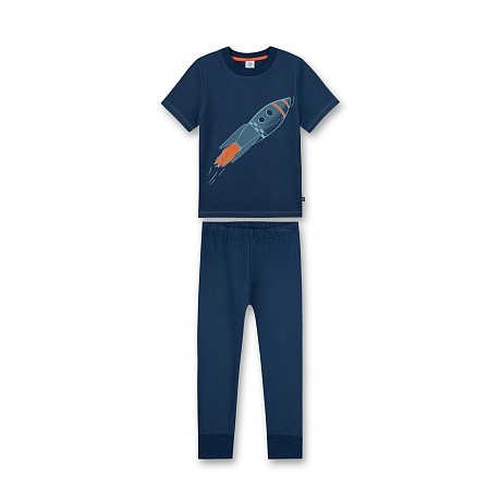 Пижама Sanetta – это идеальный выбор для маленьких космонавтов! Изготовленная из 100% хлопка, она украшена ярким принтом ракеты с оранжевыми деталями на темно-синем фоне. Нежная ткань и удобная посадка создают комфорт для вашего ребенка. На фотографиях видна аккуратная оранжевая контрастная окантовка по краю и мягкое эластичное края на трусах. Качество от немецкого бренда и внимание к деталям делают эту пижаму отличным выбором для вашего малыша!