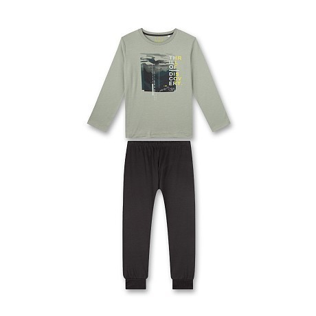 Пижама Sanetta – это идеальный выбор для мальчиков! Изготовленная из 100% хлопка, она украшена хаки принтом с надписью 'Thrill of Discovery'. Нежная хаки основа с яркой надписью и изображением гор создает стильный и уютный настрой. На фотографиях видна удобная посадка и эластичная резинка по низу брюк. Качество от немецкого бренда и внимание к деталям делают эту пижаму отличным выбором для вашего подростка!
