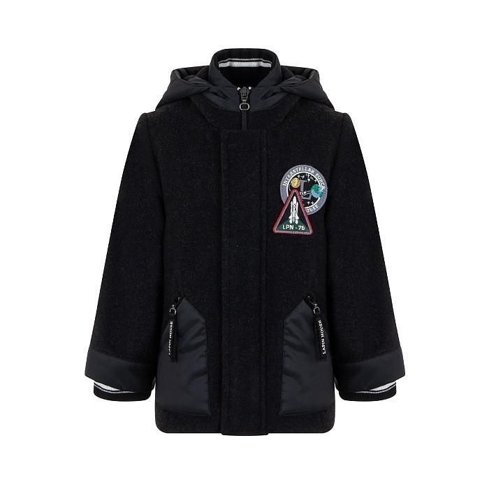Темно-серое полупальто Lapin House с принтом для мальчиков - 232E1257/М/23-02 - купить в LapinLand.ru