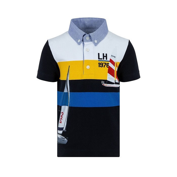 Трикотажная рубашка-поло для мальчиков Lapin House с принтом яхт и надписью LH 1976