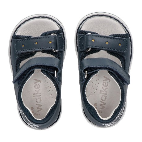 Сандалии Walkey – идеальный выбор для активных мальчиков! Изготовленные из высококачественной кожи с подкладкой из натуральной кожи и термопластичной резины, они обеспечивают комфорт и надежность. Синий цвет с белыми звездами на передней части создает яркий и модный образ. Удобные застежки на липучках делают их легко надеваемыми и снимаемыми. Качество и стиль от итальянского бренда Walkey делают эти сандалии отличным выбором для вашего ребенка!
